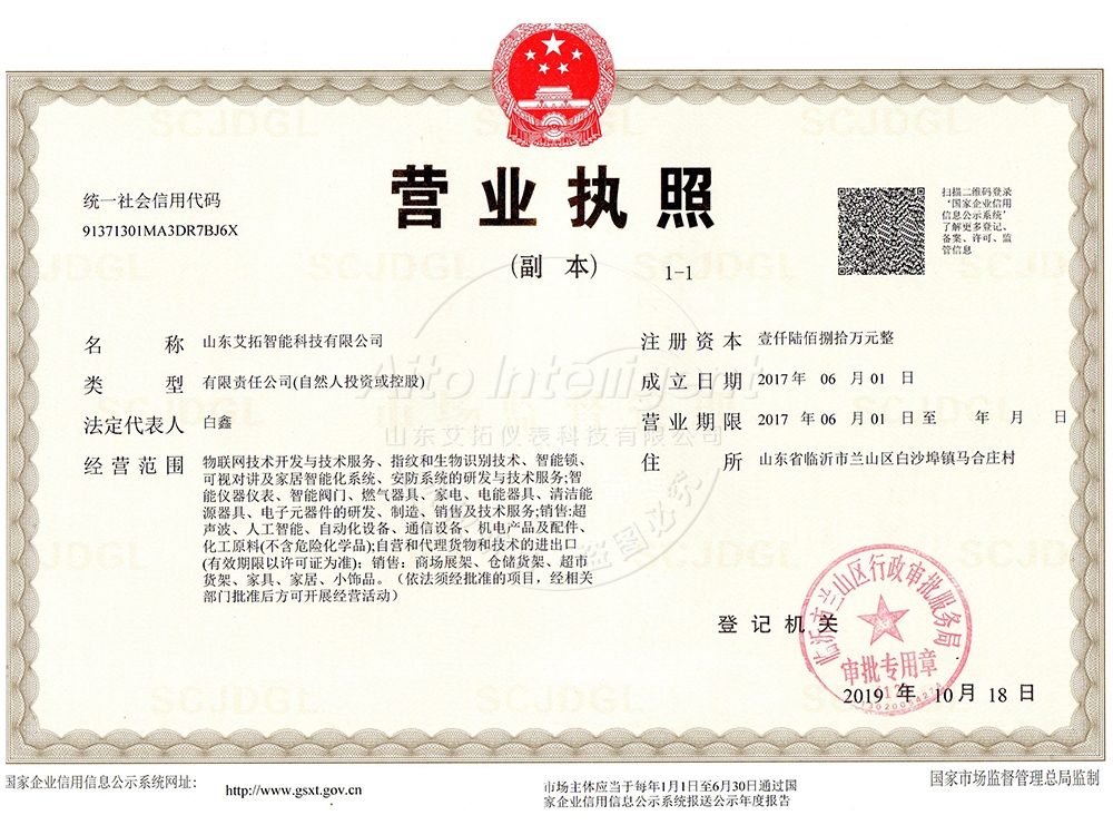 山東艾拓智能科技有限公司是以設計、研發(fā)、生產(chǎn)、銷售、服務為一體的綜合性新型企業(yè),我們一直致力于生產(chǎn)智能水表、智能電表、智能燃氣表、超聲波熱量表等四大系列50余款產(chǎn)品,公司注冊資金1680萬元,占地6000余平。